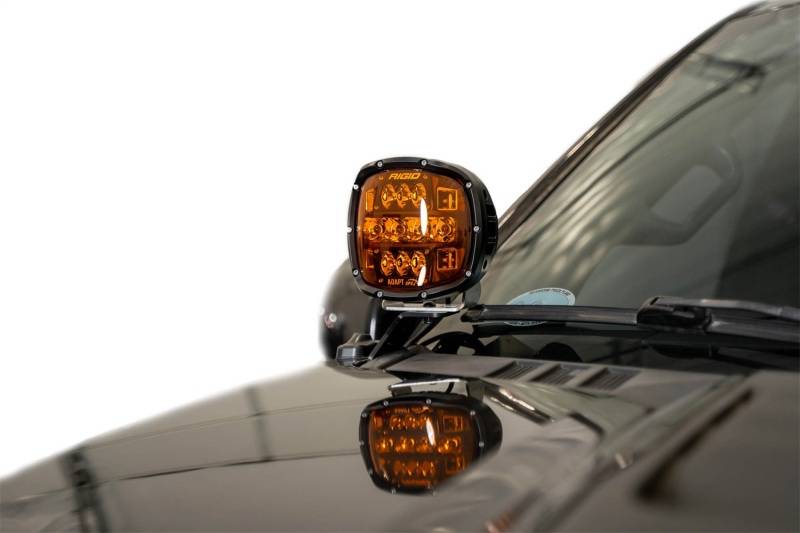 Illuminate your path with our Ditch Light Brackets. Crafted from durable 1/8-inch steel and finished in a sleek, black powder coat, they complement the body style. The brackets mount to the hood hinges, positioning the light near the A-pillar to keep them from obstructing your sightline. Lighting options include anything from a 3 in. Rigid or Baja cube light to a Rigid 360 or Baja Designs LP6 round light. The lights can be pointed forward or angled towards the side depending on your application. As always, these are Made in America. * Please Note: A 2-inch stubby antenna, or removal of the factory antenna, is required to run larger lights like the LP4, LP6, 6-inch Rigid 360s, or other similar sized lights.