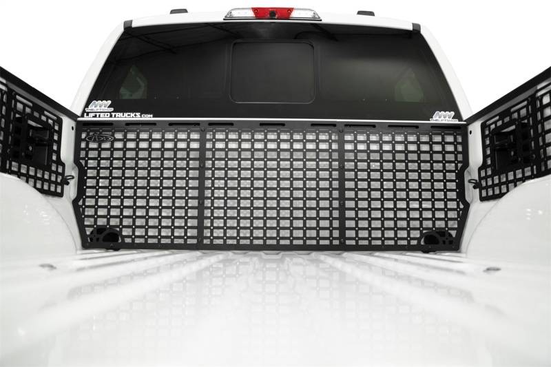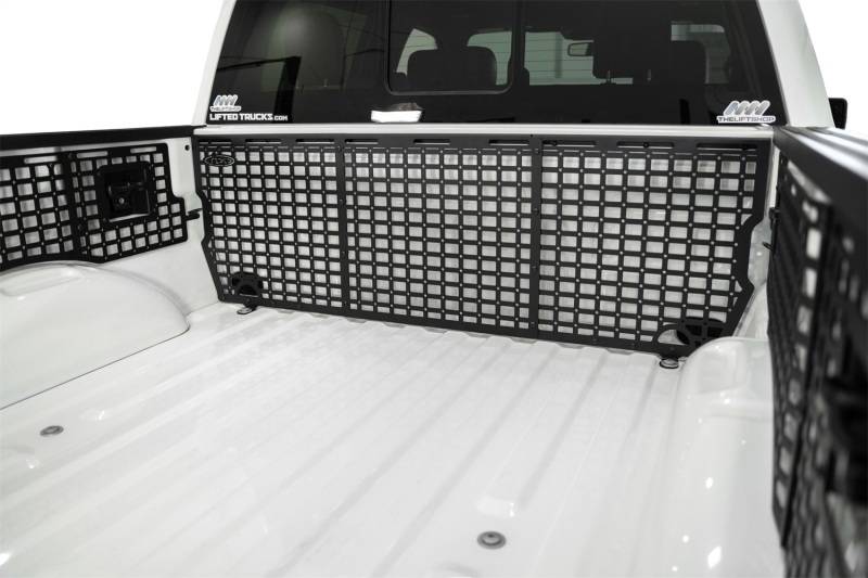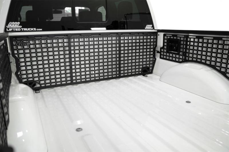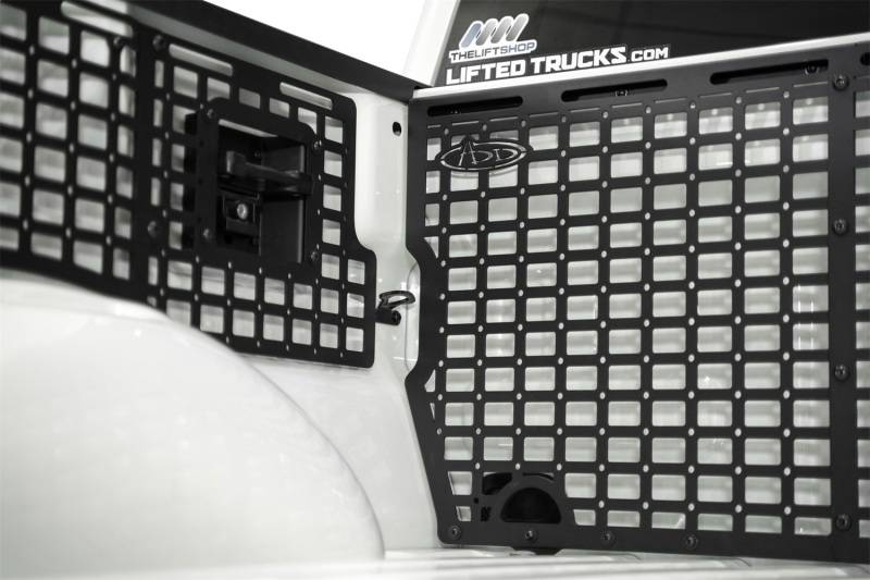 Our Bed Cab Molle Storage Panels are the ultimate cargo solution for those who need effective truck bed storage solutions. Our Molle Panels provide a versatile platform for attaching and organizing your trail gear. They are compatible with a range of attachment systems including quick fist mounts, molle straps, bolts, and other tactical solutions. The panels were designed to closely follow the contours of the truck bed, with a fitment unrivaled by others. The factory tie down points are retained, and additional tie-down options are provided by our system. Manufactured from American steel, these panels maximize cargo storage by utilizing vertical storage space to keep the truck bed free for larger loads. The panels are ideal for storing gear such as shovels, hi-lift jacks, fluid tanks, recovery gear, and more. Our panels are finished with a hammer black powder coat, bringing a sleek style and providing resistance to the elements. Multiple mounting points ensure the panels are rigid and secure, yet are easily removable if needed. As always, these are Made in America. The Bed Cab Molle Panels can be configured in 4 ways: Driver, Center, & Passenger Side Full Set / Driver Side Panel Only / Passenger Side Panel Only / Driver & Passenger Side Panels Only * Please Note: Center panel cannot be installed on its own. It requires BOTH the driver and passenger side panel for installation. ** Please Note: Some drilling is required for installation.