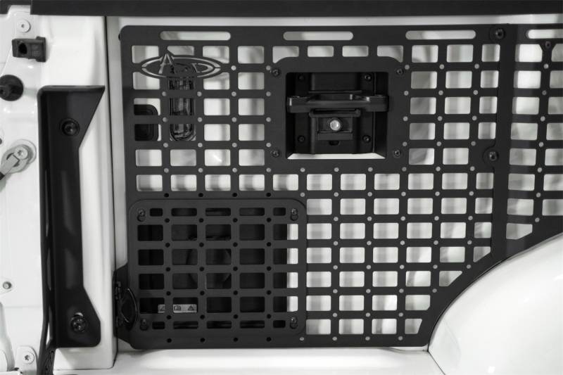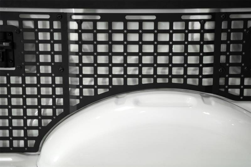 Our Bed Side Molle Panels optimize the cargo storage capabilities of your truck bed. Engineered for off-road durability and keeping your gear secure, these storage panels are compatible with various attachment systems. You can secure your gear to these panels with molle mounts, straps, bolts, or tie-down straps. Choose from several configurations for the driver side, passenger side, or both sides to maximize your vertical storage - and leave the bed floor clear for larger cargo. Our panels are unrivaled in their fitment, as the very closely follow the contours of the truck bed. Constructed from American steel and finished in a durable 2-stage hammer black powder coat, these molle panels add secure storage for essentials like shovels, hi-lift jacks, fluid tanks, recovery gear, and more. The panels mount to the bed at several points, ensuring rigidity on rough terrain. Even so, they are easily removable when needed. As always, these are fully bolt-on and Made in America. This modular system allows for you to run 4 configurations on driver side, passenger side, or both: Front Bed Panel Only / Rear Bed Panel Only / Front & Rear Bed Panels Only / Front, Center, & Rear Bed Panels for Full Bed Length Coverage * Please Note: The front panels can be installed to either the driver or passenger sides. All other panels are unique to each side of the truck, and will only install to its dedicated side. ** Please Note: Center panel cannot be installed on its own. It requires BOTH the front and rear panels for installation. ** Fitment Note: These are compatible with the 5.5' Short Bed Only.