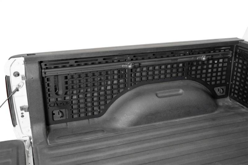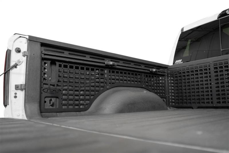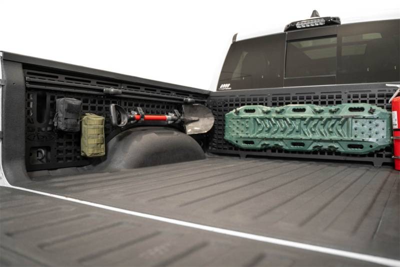 Our Bed Side Molle Panels optimize the cargo storage capabilities of your truck bed. Engineered for off-road durability and keeping your gear secure, these storage panels are compatible with various attachment systems. You can secure your gear to these panels with molle mounts, straps, bolts, or tie-down straps. Choose from several configurations for the driver side, passenger side, or both sides to maximize your vertical storage - and leave the bed floor clear for larger cargo. Our panels are unrivaled in their fitment and closely follow the contours of the truck bed. Constructed from American steel and finished in a durable 2-stage hammer black powder coat, these molle panels add secure storage for essentials like shovels, hi-lift jacks, fluid tanks, recovery gear, and more. The panels mount to the bed at several points, ensuring rigidity on rough terrain. Even so, they are easily removable when needed. As always, these are fully bolt-on and Made in America. This modular system allows for you to run 4 configurations on driver side, passenger side, or both: Front Bed Panel Only / Rear Bed Panel Only / Front & Rear Bed Panels Only / Front, Center, & Rear Bed Panels for Full Bed Length Coverage ** Please Note: Center panel cannot be installed on its own. It requires BOTH the front and rear panels for installation. The Center panel can be installed to both the Driver Side or Passenger Side of the bed.** Please Note: Only fits the 5.7' length bed.