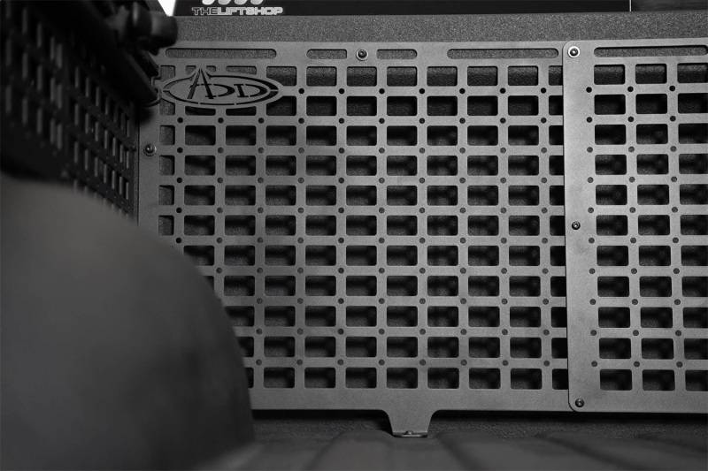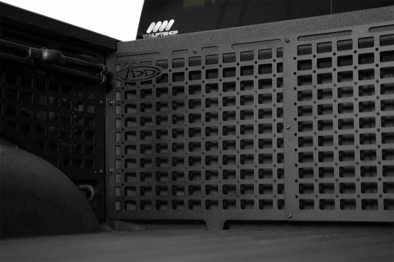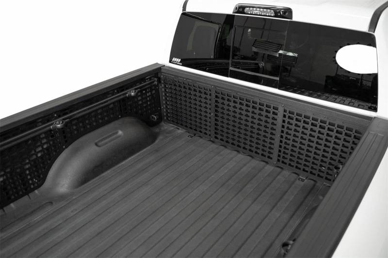 Our Bed Cab Molle Storage Panels are the ultimate cargo solution for those who need effective truck bed storage solutions. Our Molle Panels provide a versatile platform for attaching and organizing your trail gear. They are compatible with a range of attachment systems including quick fist mounts, molle straps, bolts, and other tactical solutions. The panels were designed to closely follow the contours of the truck bed, with a fitment unrivaled by others. The factory tie down points are retained, and additional tie-down options are provided by our system. Manufactured from American steel, these panels maximize cargo storage by utilizing vertical storage space to keep the truck bed free for larger loads. The panels are ideal for storing gear such as shovels, hi-lift jacks, fluid tanks, recovery gear, and more. Our panels are finished with a hammer black powder coat, complementing the factory styling and providing resistance to the elements. Multiple mounting points ensure the panels are rigid and secure, yet are easily removable if needed. As always, these are Made in America. The Bed Cab Molle Panels can be configured in 4 ways: Driver, Center, & Passenger Side Full Set / Driver Side Panel Only / Passenger Side Panel Only / Driver & Passenger Side Panels Only * Please Note: Center panel cannot be installed on its own. It requires BOTH the driver and passenger side panel for installation. ** Please Note: Some drilling is required for installation.