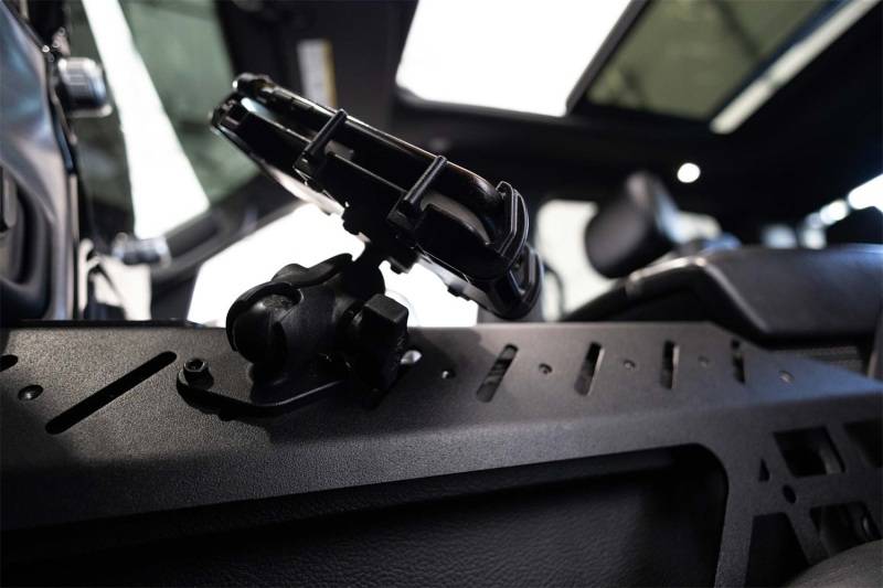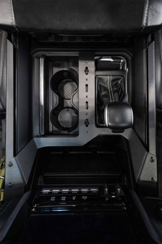 Our Center Console Molle Panels & Digital Device Bridge enables you to keep your everyday carry gear at arms reach. It was designed to flow with the interior lines of your truck's center console, and is finished in a dual-stage hammer black powder coat to complement the factory styling. Driver & passenger side molle panels offer mounting points for gear like pouches, multi-tools, holsters, or other molle accessories. Top plates with 10-24 PEM nuts run the length of the console and provide mounting points for RAM Mounts device holders. An additional bridge plate that crosses over the console features device mounting points, and is perfect for stowing your smartphone, GPS, radio mic, tablet, & other device holders. * Please Note: Drilling is required for installation. 3 Possible Configurations: Side Panels Only - The Side Molle Panels can be installed on their own, without the bridge. This offers you molle mounting options, as well as the upper side rails which are compatible with Ram Mounts device holders. Side Panels & Bridge - This configuration provides you with the maximum utility, offering plentiful molle mounting options, and versatile device holder mounting locations at both the sides and the center of the console. Bridge Only - Although the Device Bridge can be installed on its own, we strongly encourage you to install the side panels along with the bridge for the cleanest aesthetic.