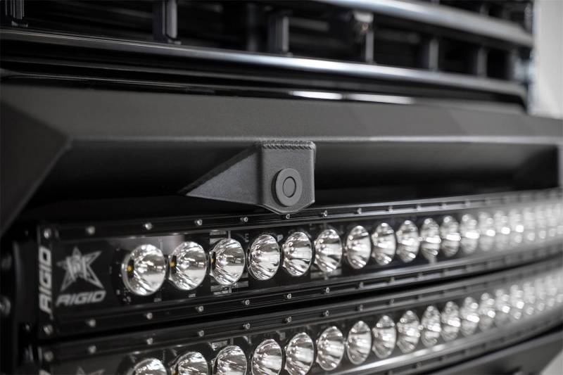 Winch mount; Sensor cutouts; Hammer black powder coat finish; Satin black powder coat panel finish; Mounts for dual light bars or round lights; Mounts for cube lights on sides;