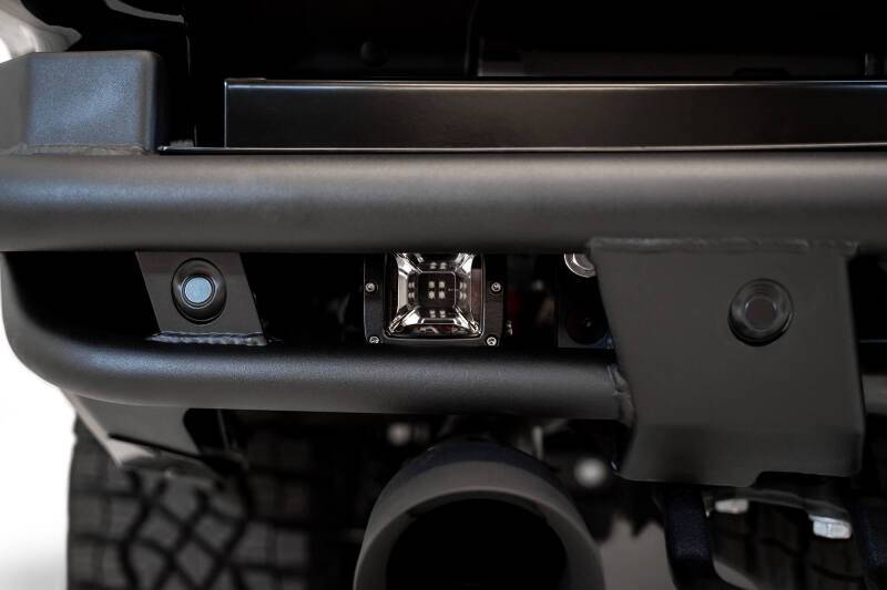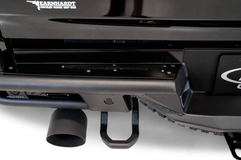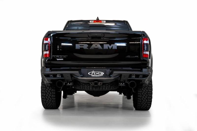 ADD Offroad Ram TRX PRO Bolt-On Rear Bumper brings the same extremely low profile design of the front bumper to the rear of the truck. It was designed to flow flawlessly with the lines of your truck. Manufactured with a tubular steel frame coupled with steel & aluminum plates to provide solid protection to the rear of your truck, while still maximizing ground clearance. There are 2 rear facing cube light mounting points that are protected by the tubular frame. The bumper retains holes for the OEM parking sensors, and also leaves the OEM tow hooks intact. The side wings of the bumper leave room for the factory bed step. As always, this is fully bolt-on and Made in America.