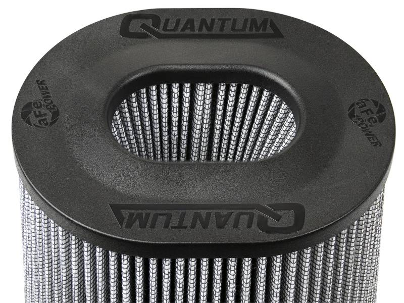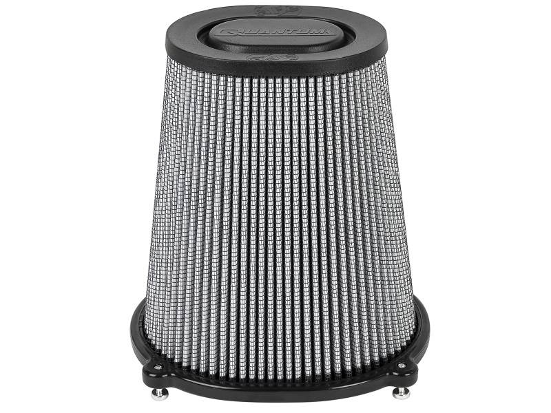 Quantum Pro DRY S air filter by aFe Power is specifically designed for the Quantum Series cold air intake systems and feature an injection molded base and top for lighter weight and rigidity. The newly designed base includes a built-in, 3-angle velocity stack for smooth, even airflow. The Quantum Pro DRY S filter is a 360-degree radial flow air filter with oil-free, 3-layer progressively finer porosity synthetic media for optimum flow, filtration and convenience. Captive screws are included to eliminate lost hardware and to securely fasten to the Quantum Intake system housing.