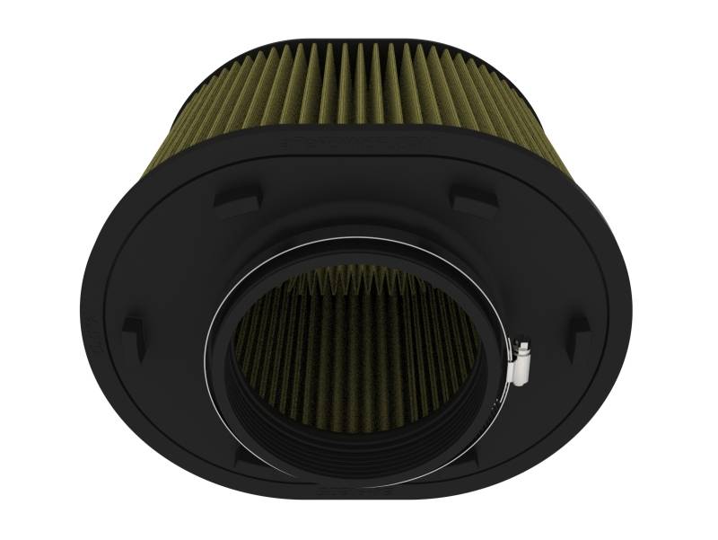 This filter features seven layers of composite media for maximum protection. The patented combination of oiled cotton gauze with synthetic material allows this media to thrive in the dustiest and dirtiest environments imaginable. Pro-GUARD 7 filters are easily recharged with aFe's POWER CLEANER and gold air filter oil. aFe POWER performance air filters use a rounded, evenly spaced pleat design which allows for more usable filter surface area, providing increased flow and greater dust holding capacity. This aFe POWER performance air filter is constructed with a polyurethane base and top. Unlike other materials that degrade after repeated heat cycles in an engine bay, polyurethane maintains its original molded shape. Utilizing the filter's retention groove, the filter locks into select Magnum FORCE Series housings with zero hardware. This simple design allows for easy filter maintenance and replacement.