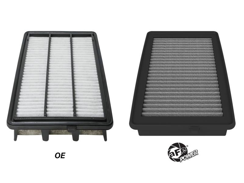 This filter features three layers of oil-free synthetic media and requires no oil during maintenance to provide maximum convenience. Its progressive layering provides great filtration efficiency and dust holding capacity. This media is best suited for street use. Pro DRY S filters are easily recharged with aFe's POWER CLEANER. aFe POWER performance air filters use a rounded, evenly spaced pleat design which allows for more usable filter surface area, providing increased flow and greater dust holding capacity. This pliable sealing surface conforms to even the most uneven filter housing, making for a perfect filter fit and sealing surface every time. This design eliminates the use of gaskets or sealants and always goes back to its original form. All aFe POWER flat panel performance air filters are constructed with a full 360-degree polyurethane frame. Unlike other materials that degrade after repeated heat cycles in an engine bay, polyurethane maintains its original molded shape.