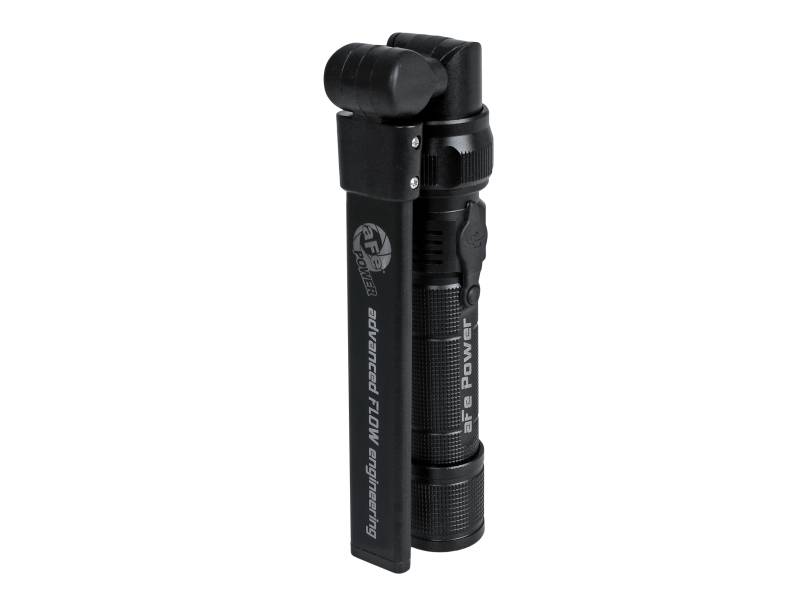 Introducing the new aFe POWER 360-degree folding LED work light. This LED light features a strong magnetic base that allows you to put it on any metal surface. You can mount this light almost anywhere you need too. Whether your working on your car, in your garage or around the house, this 350 Lumen LED light provides you with a wide area illuminating light, which you can adjust to any position with its unique 360-degree rotation. For the times you need a small light to get into those tight spots, this light also features a small 50 lumens Samsung LED at the head of the tip. This allows you to reach into those small tight spaces to illuminate those dark hard to reach areas. Whether you’re working in the garage or need some light on the road, this work light is the perfect companion. LED has a low power draw, giving this USB rechargeable light long running time, and will charge from your vehicle’s USB port. It easily fits in the palm of your hand and nicely folds in half. This small compact design fits into any glove box, center console or storage box.
