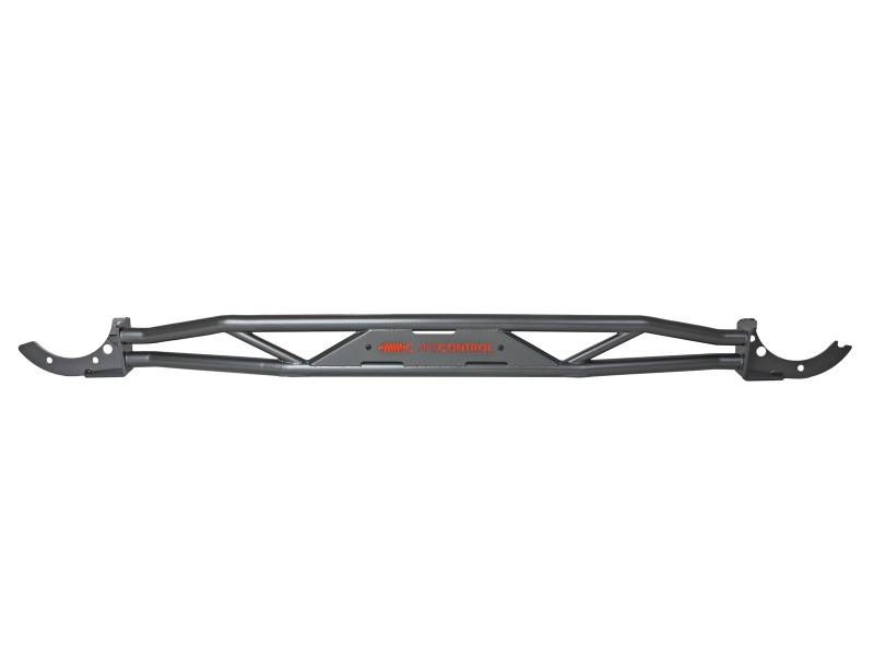 aFe CONTROL Front Suspension Strut Brace is designed to stiffen up your chassis and dress up your engine bay. By reducing chassis flex and deflection, the suspension is better able to do its job resulting in improved turn-in response and front-end stability. The one-piece, dual-tube truss design better resists flexing, twisting, and bending when compared to single flat bars or hinged braces. Steel tubular bars and brackets provide strength and heat resistance making them suitable for use in modern engine bays. The Strut Brace is finished in durable, Gunmetal Gray Powder Coat and comes with an orange removable logo plate can be installed as-is or customized to match the color scheme of your car.