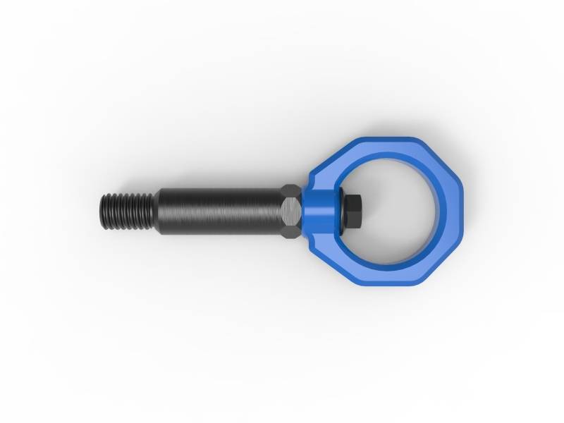 Add aggressive styling, and useful functionality to your GR Supra with aFe Control’s front tow hook. Its sleek design not only looks great but is strong enough to safely winch your car onto a tow truck or get towed trackside if the need arises. Our Supra specific CNC machined stem and loop is made of 4130 steel. The stem is black zinc coated for corrosion resistance. The loop is powder coated Blue (Red, Gray, and Black are available). This is not a universal tow hook. The stem was specifically designed for the Supra and the length was carefully determined to fit the front bumper. A proper rear tow hook to match is also available. (p/n 450-721002-L). Both the stem and bolt threads are pre-coated with Vibra-tite threadlocker. This keeps your tow hook from loosening due to vibration. The special threadlocker is designed to remain flexible, removable, and reusable.
