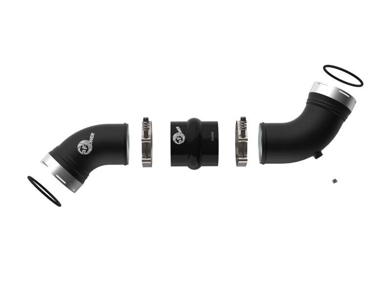 Smooth transitions in the mandrel-bent aluminum pipes decrease turbulence and minimize pressure loss, increasing horsepower and torque. This kit includes high-quality, stainless-steel, spring-loaded T-bolt clamps and heavy-duty, 5-ply, polyester reinforced silicone couplings. This charge pipe kit also features factory style billet aluminum quick-connect adapters with o-ring seals to ensure a leak-free fit while maintaining superior strength and durability. Finished in wrinkle black powder coating with a unique laser-etched aFe POWER logo for a custom look.