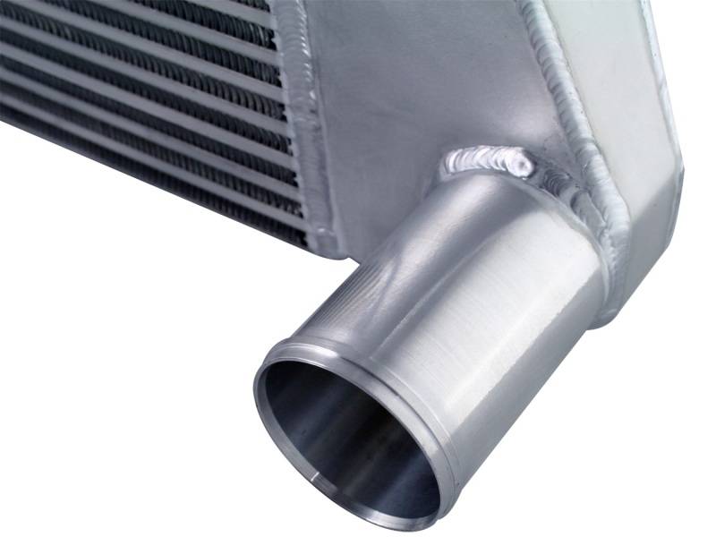 Bladerunner Intercoolers represent the next generation of intercoolers. The Bladerunner intercoolers utilize a 3 in. bar and plate design that out performs OE style tube and fin core designs. The end tanks are constructed out of 3/16 in. TIG welded aluminum plate tanks that incorporate three multi-directional vanes that efficiently direct air flow through the entire core for maximum cooling. The Bladerunner intercooler also comes with 4 1/8 in. pre-tapped ports for easy gauge installation as well as other auxiliary input options. Tested at 200psi which is perfect for the high boost applications. In recent testing the Bladerunner intercooler produced a 200 deg. temperature drop and a 100 deg. EGT drop as well as increasing air flow by 30 percent. Dont waste your time and money on modified factory intercooler. Invest in the aFe Bladerunner intercooler. the most sophisticated intercooler design on the planet.