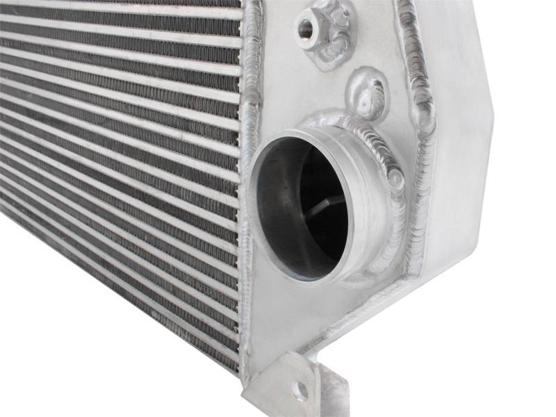 Bladerunner Intercoolers represent the next generation of intercoolers. The Bladerunner intercoolers utilize a 3 in. bar and plate design that out performs OE style tube and fin core designs. The end tanks are constructed out of 3/16 in. TIG welded aluminum plate tanks that incorporate three multi-directional vanes that efficiently direct air flow through the entire core for maximum cooling. The Bladerunner intercooler also comes with 4 1/8 in. pre-tapped ports for easy gauge installation as well as other auxiliary input options. Tested at 200psi which is perfect for the high boost applications. In recent testing the Bladerunner intercooler produced a 200 deg. temperature drop and a 100 deg. EGT drop as well as increasing air flow by 30 percent. Dont waste your time and money on modified factory intercooler. Invest in the aFe Bladerunner intercooler. the most sophisticated intercooler design on the planet.