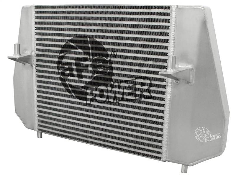 Bladerunner Intercoolers represent the next generation of intercoolers. The Bladerunner intercoolers utilize a 3 in. bar and plate design that out performs OE style tube and fin core designs. The end tanks are constructed out of 3/16 in. TIG welded aluminum plate tanks that incorporate three multi-directional vanes that efficiently direct air flow through the entire core for maximum cooling. The Bladerunner intercooler also comes with 4 1/8 in. pre-tapped ports for easy gauge installation as well as other auxiliary input options. Tested at 200psi which is perfect for the high boost applications. In recent testing the Bladerunner intercooler produced a 200 deg. temperature drop and a 100 deg. EGT drop as well as increasing air flow by 30 percent. Dont waste your time and money on modified factory intercooler. Invest in the aFe Bladerunner intercooler. the most sophisticated intercooler design on the planet.
