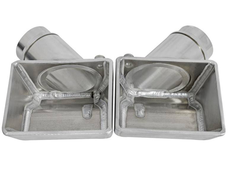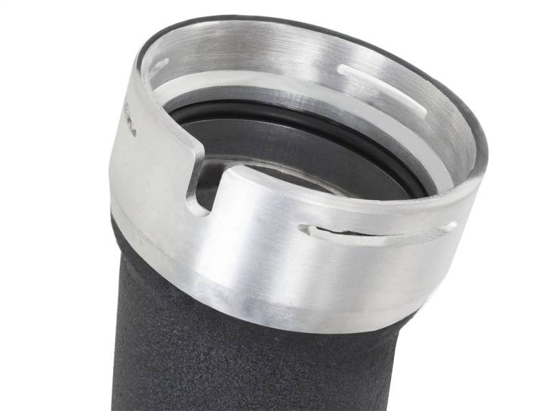 End Tanks: The unique BladeRunner end tanks are constructed out of 3/16" thick aluminum plates and include two 1/8" NPT ports for sensors or water-methanol injection. 5" Bar and Plate Core Design: The use of the bar and plate core design allows for greater airflow and increased heat dissipation over the much smaller tube and fin design used by the factory. TIG-Welded: 100% TIG-Welded inside and out by a certified craftsmen for strength and durability. TIG-Welding provides the strongest welds while reducing stress cracks. Pressure Tested: The BladeRunner Intercooler is test pressure rated at 200psi. Mandrel-bent Tubing: Constructed of 2-1/2" to 3" mandrel-bent aluminum tubing and powder-coated wrinkle-black for heat and corrosion resistance. The smooth transition mandrel bends decrease turbulence which increases horsepower and torque. The high-temp wrinkle-black powder-coating insulates the tubes from engine heat and protects them from corrosion. aFe Badging: Unique aluminum laser-cut aFe Power logo plate is welded-on for an aggressive style. Perfect Fit: Includes stainless steel clamps for a leak-free seal and heavy-duty 5-Ply reinforced silicone coupling for strength.