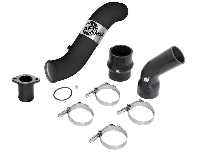 Flow and Performance: Constructed of 3" mandrel bent, powder-coated aluminum tubing for maximum flow. The smooth transition bends decrease turbulence and minimize pressure loss, increasing horsepower, torque and lowering EGT's. Installs on the Hot Side to transfer heated air smoothly to the intercooler to accelerate heat transfer for better performance. Perfect Fit: Utilizes the factory mounting locations to provide stability for a hassle-free installation. Includes high quality stainless steel spring loaded t-bolt clamps and heavy-duty 5-Ply couplings for strength. Fits OEM or aFe's upgraded intercooler (46-20281). aFe Badging: A unique stainless steel laser-cut aFe power logo plate is welded-on for an aggressive style