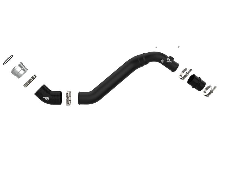 Smooth transitions in the mandrel-bent aluminum pipes decrease turbulence and minimize pressure loss, increasing horsepower and torque. The BladeRunner charge pipe kit provides a smooth transition between the turbo and the engine for lower operating temperatures and increased power. This charge pipe kit features a factory style billet aluminum quick-connect adapter with an o-ring seal to ensure a leak-free fit while maintaining superior strength and durability. Finished in wrinkle black powder coating with a unique laser-etched aFe POWER logo for a custom look.