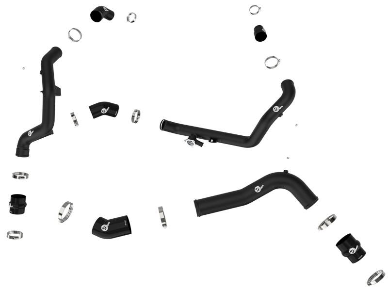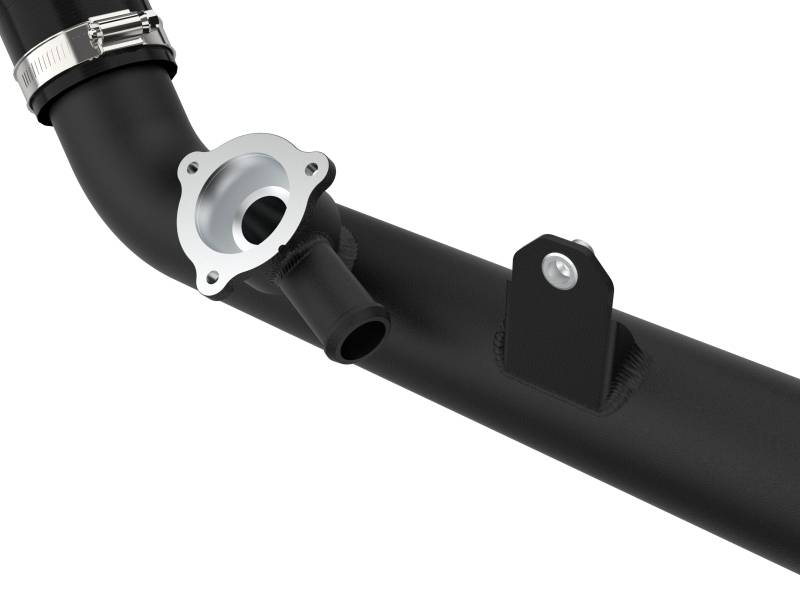 Smooth transitions in the mandrel-bent aluminum pipes decrease turbulence and minimize pressure loss, increasing horsepower and torque. This charge pipe kit provides a smooth transition between the turbo and the engine for lower operating temperatures and increased power. This kit includes high-quality, stainless-steel, SmartSeal clamps and heavy-duty, 5-ply, polyester reinforced silicone couplings for superior strength and durability. Finished in wrinkle black powder coating with a unique laser-etched aFe POWER logo for a custom look.