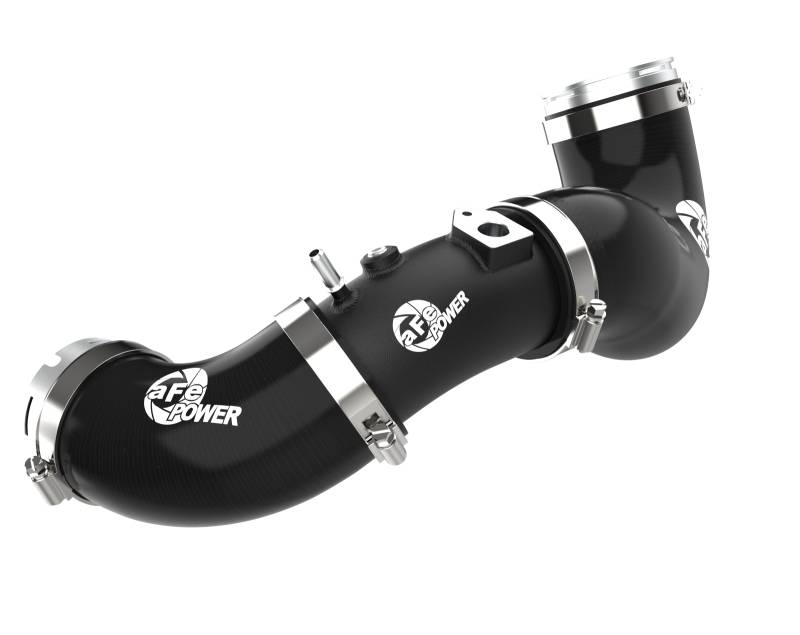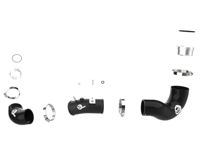 Smooth transitions in the mandrel-bent aluminum pipes decrease turbulence and minimize pressure loss, increasing horsepower and torque. This kit includes high-quality, stainless-steel, smartseal clamps and heavy-duty, 5-ply, polyester reinforced silicone couplings. This charge pipe kit also features factory style billet aluminum quick-connect adapters with o-ring seals to ensure a leak-free fit while maintaining superior strength and durability. Finished in wrinkle black powder coating with a unique laser-etched aFe POWER logo for a custom look.