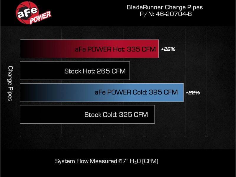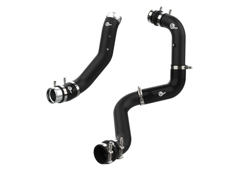 Smooth transitions in the mandrel-bent aluminum pipes decrease turbulence and minimize pressure loss, increasing horsepower and torque. This charge pipe kit provides a smooth transition between the turbo and the engine for lower operating temperatures and increased power. This kit includes high-quality, stainless-steel, spring-loaded t-bolt clamps and heavy-duty, 5-ply, polyester reinforced silicone couplings. This charge pipe kit also features factory style billet aluminum quick-connect adapters with o-ring seals to ensure a leak-free fit while maintaining superior strength and durability. Finished in wrinkle black powder coating with a unique laser-etched aFe POWER logo for a custom look.