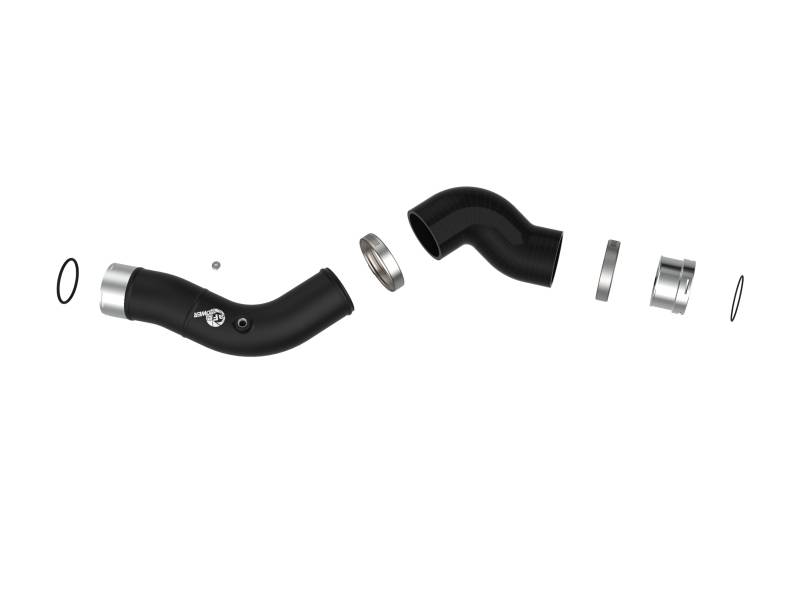 Smooth transitions in the mandrel-bent aluminum pipes decrease turbulence and minimize pressure loss, increasing horsepower and torque. This kit includes high-quality, stainless-steel, SmartSeal clamps and heavy-duty, 5-ply, polyester reinforced silicone couplings. This charge pipe kit also features factory style billet aluminum quick-connect adapters with o-ring seals to ensure a leak-free fit while maintaining superior strength and durability. Finished in wrinkle black powder coating with a unique laser-etched aFe POWER logo for a custom look.