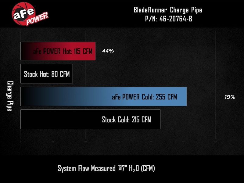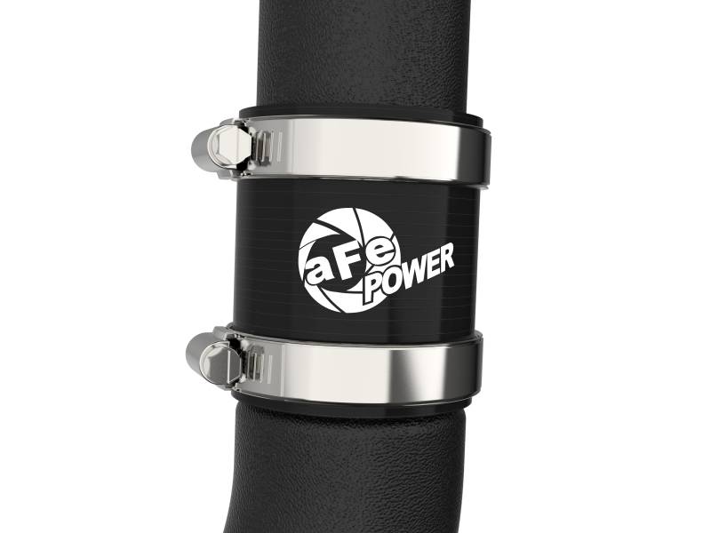Smooth transitions in the mandrel-bent aluminum pipes decrease turbulence and minimize pressure loss, increasing horsepower and torque. This charge pipe kit provides a smooth transition between the turbo and the engine for lower operating temperatures and increased power. This kit includes high-quality, stainless-steel, SmartSeal clamps and heavy-duty, 5-ply, polyester reinforced silicone couplings for superior strength and durability. Finished in wrinkle black powder coating with a unique laser-etched aFe POWER logo for a custom look.