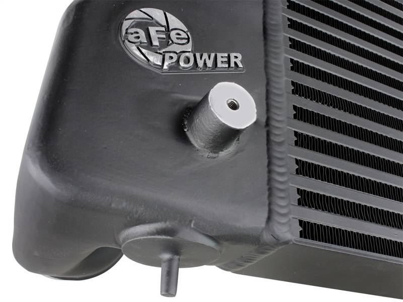 Bladerunner Intercoolers represent the next generation of intercoolers. The Bladerunner intercoolers utilize a 3 IN bar and plate design that out performs OE style tube and fin core designs. The end tanks are constructed out of 3/16 IN TIG welded aluminum plate tanks that incorporate three multi-directional vanes that efficiently direct air flow through the entire core for maximum cooling. The Bladerunner intercooler also comes with 4-1/8 IN pre-tapped ports for easy gauge installation as well as other auxiliary input options. Tested at 200psi which is perfect for the high boost applications. In recent testing the Bladerunner intercooler produced a 200 deg. temperature drop and a 100 deg. EGT drop as well as increasing air flow by 30 percent. Dont waste your time and money on modified factory intercooler. Invest in the aFe Bladerunner intercooler. the most sophisticated intercooler design on the planet.