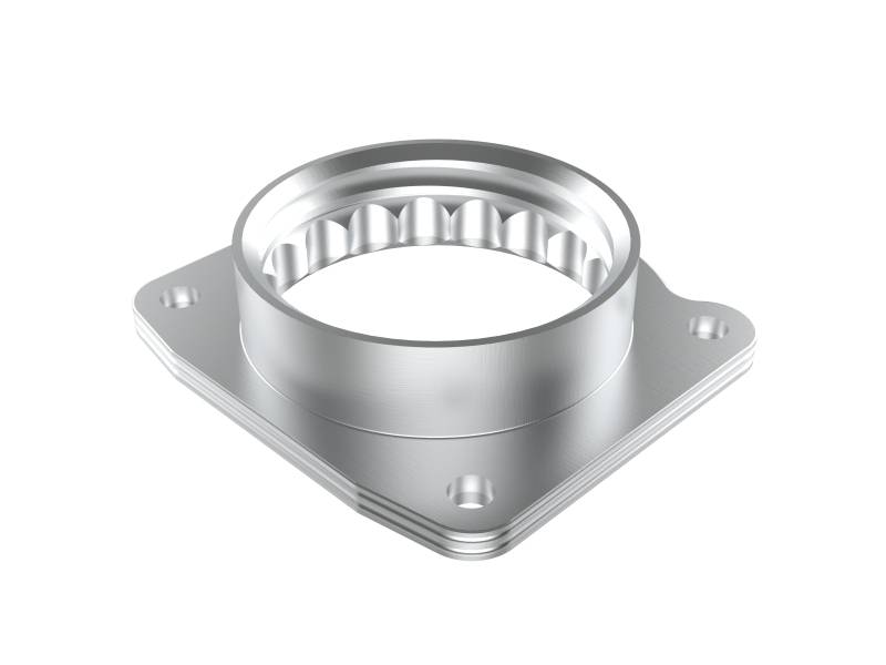 The Serrated/Helix combination design creates intake turbulence in the combustion chamber. This turbulence breaks up the fuel which creates a more complete combustion cycle increasing horsepower, torque and improving throttle response. The Serrated/Helix combination design also reduces intake whistle that occurs with Helix only designs. All Silver Bullet Throttle Body Spacers are constructed from 6061-T6 billet aluminum precision machined for light weight, high strength and perfect fit and finish. Complete with an orange anodized finish, the Silver Bullet Throttle Body Spacer will stand out as a per engine bay. This Silver Bullet throttle body spacer uses all factory mounting locations providing stability and a hassle-free installation.