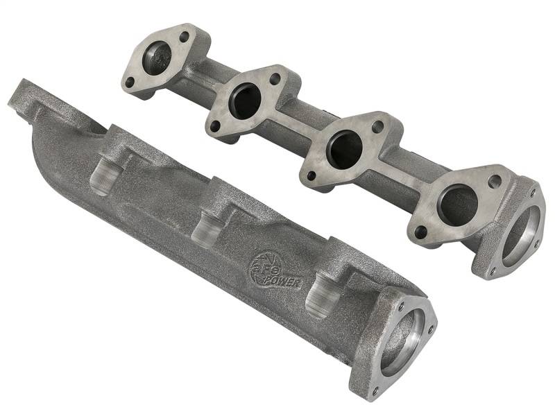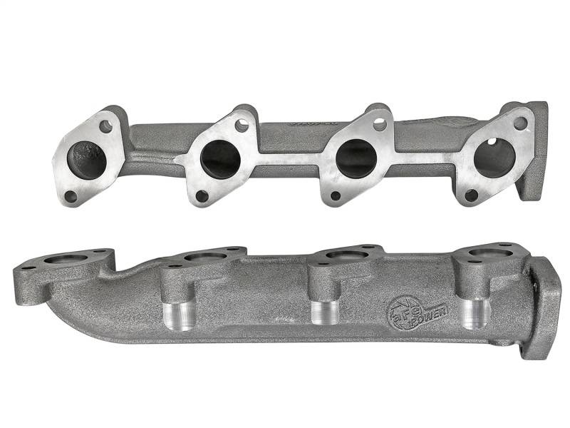 Bolt on diesel power with aFe's BladeRunner exhaust manifolds for your 08-10 6.4L Powerstroke. These ported ductile iron manifolds will reduce pressure loss to your turbocharger for increased performance and improve throttle response. The manifolds are compatible with all factory equipment including AC lines, heat shields, and EGR cooler for a true bolt- on upgrade. These manifolds have both the inlet and the outlet ports CNC machined to match the factory ports. This allows for maximum flow, without compromising the integrity of gasket sealing for a leak-free seal. An Exhaust Gas Temperature (EGT) port is incorporated into each manifold for easy installation of gauges or testing equipment. These manifolds are compatible with the stock up-pipes, which allows the manifolds to be installed without having to remove the turbocharger down-pipe or the up-pipes.