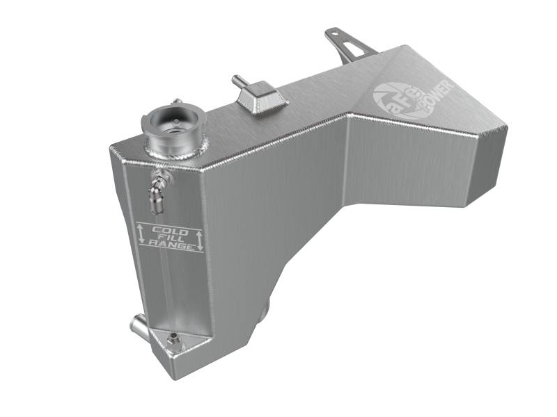 The aFe POWER BladeRunner GT Expansion Tank offers a premium upgrade to the factory expansion tank in your Dodge Charger/Challenger. Say Goodbye to the aging plastics of the stock tank, susceptible to yellowing and brittleness over time, affecting both appearance and reliability.BladeRunner GT Expansion tanks are crafted from 1/8" thick aluminum plates for superior durability and longevity when compared to factory tanks. The incorporation of billet aluminum fittings eliminates weak points, ensuring a secure, leak-free connection. Not only will this tank perform better for longer, but it is also infinitely more appealing in your car's engine bay. This tank is 100% TIG-welded for proven strength and durability as well as providing a smooth, high-quality finish. Attached using high-temp stainless-steel fittings, the sight tube allows for quick, accurate filling and monitoring of fluid levels. With a straightforward installation utilizing all factory connections, the BladeRunner GT Expansion Tank effortlessly bolts into the original location. With a sleek brushed finish, laser-etched aFe POWER logo, and a raw aluminum finish, the BladeRunner GT Expansion Tank not only elevates the overall look but also allows for easy customization. Say goodbye to the hassle of covers that simply conceal the issue.