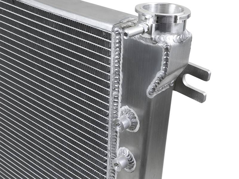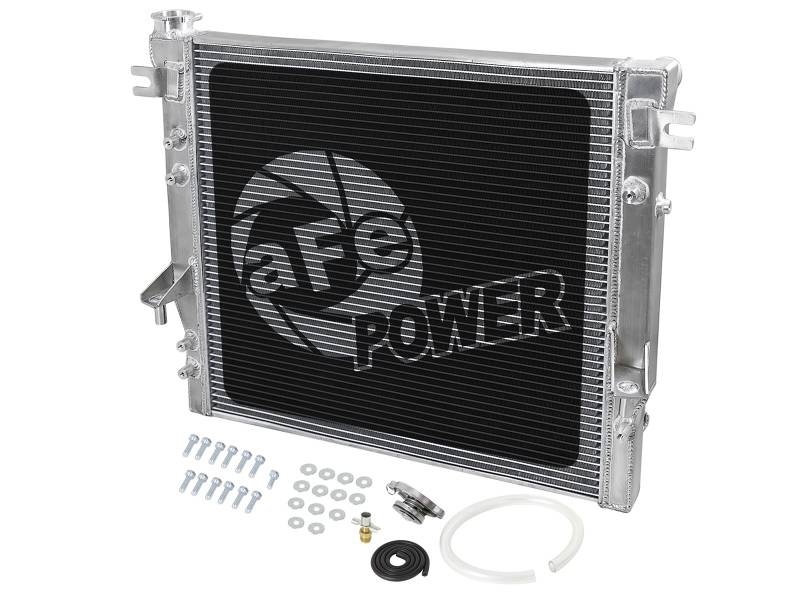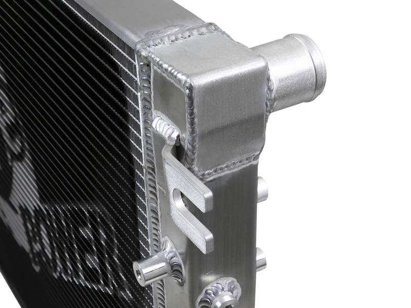 BladeRunner Street Series Radiators feature a thicker tube and fin core, which provides greater heat dissipation and better coolant flow than the factory radiator for optimum cooling efficiency. With aircraft-grade aluminum construction and a larger core, BladeRunner Street Series Radiators offer increased coolant capacity over stock to help maintain cooler operating temperatures longer. The fabricated end tanks are constructed out of 1/8in aluminum plates for strength and durability. 100% TIG-welded for race proven strength and durability. BladeRunner Street Series Radiators include a brass drain valve with barbed fitting to easily connect a hose for draining coolant. Utilizes the factory mounting locations to provide stability for a hassle-free installation. Brushed aluminum finish with an aFe POWER logo painted on the front. aFe BladeRunner silicone radiator hose kits are available separately (2007-11 Jeep JK: 46-50004-B, 2012-18 Jeep JK: 46-50014-B).