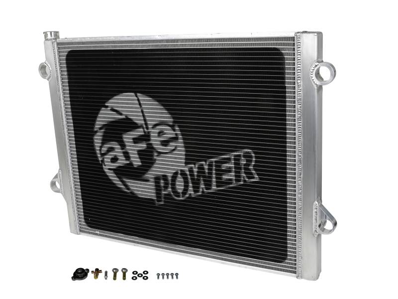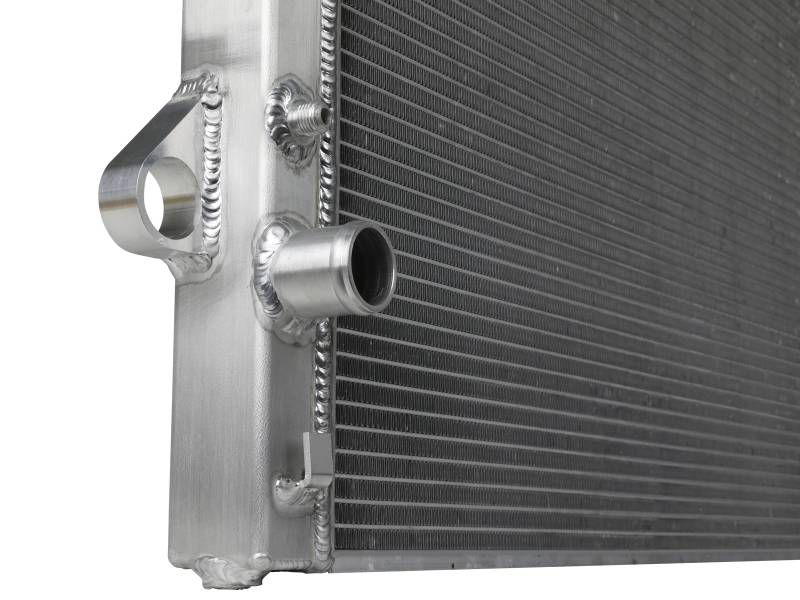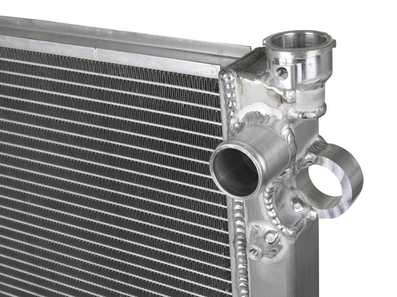 This BladeRunner Street Series Radiator features a 1-9/16" thick tube and fin core which provides greater heat dissipation and better coolant flow than the factory radiator for optimum cooling efficiency. The fabricated end tanks are constructed out of 1/8" aluminum plates for strength and durability. Billet aluminum inlet and outlet for long-lasting reliability. 100% TIG-welded for proven strength and durability. BladeRunner Street Series Radiators include a brass drain valve with fitting to easily connect a hose for draining coolant. Utilizes the factory mounting locations to provide stability for a hassle-free installation. Brushed aluminum finish with an aFe POWER logo painted on the front.