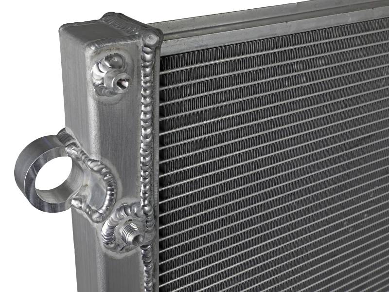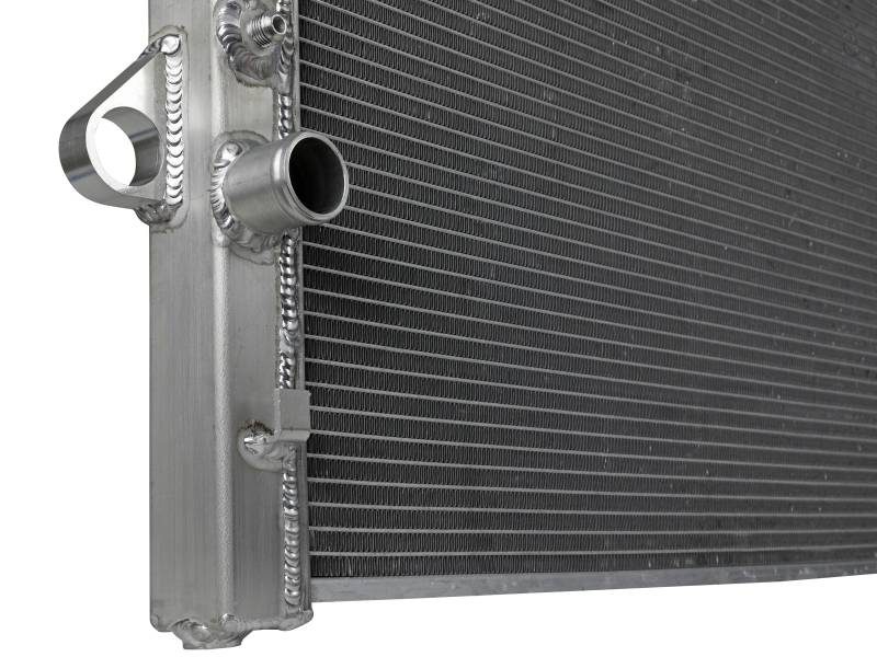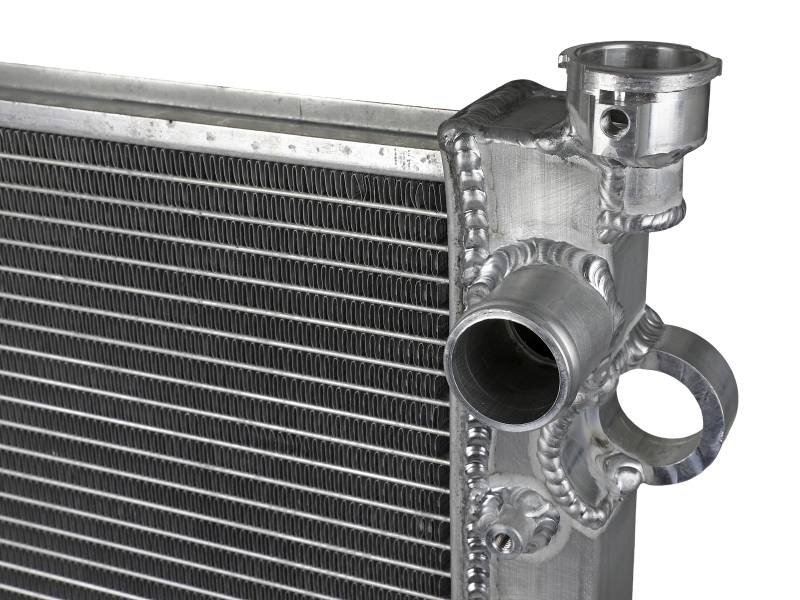 This BladeRunner Street Series Radiator features a 1-9/16" thick tube and fin core which provides greater heat dissipation and better coolant flow than the factory radiator for optimum cooling efficiency. The fabricated end tanks are constructed out of 1/8" aluminum plates for strength and durability. Billet aluminum inlet and outlet for long-lasting reliability. 100% TIG-welded for proven strength and durability. BladeRunner Street Series Radiators include a brass drain valve with fitting to easily connect a hose for draining coolant. Utilizes the factory mounting locations to provide stability for a hassle-free installation. Brushed aluminum finish with an aFe POWER logo painted on the front.