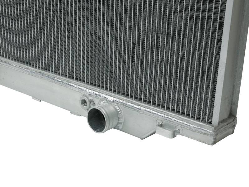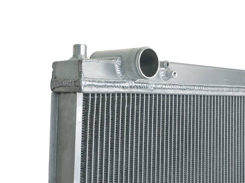 This BladeRunner Street Series Radiator features a 2-1/4" thick tube and fin core which provides greater heat dissipation and better coolant flow than the factory radiator for optimum cooling efficiency. The fabricated end tanks are constructed out of 1/8" aluminum plates for strength and durability. Billet aluminum inlet and outlet for long-lasting reliability. 100% TIG-welded for proven strength and durability. BladeRunner Street Series Radiators include a brass drain valve with fitting to easily connect a hose for draining coolant. Utilizes the factory mounting locations to provide stability for a hassle-free installation. Brushed aluminum finish with an aFe POWER logo painted on the front.