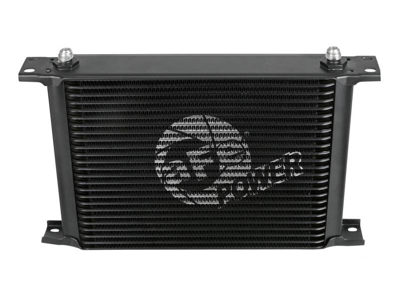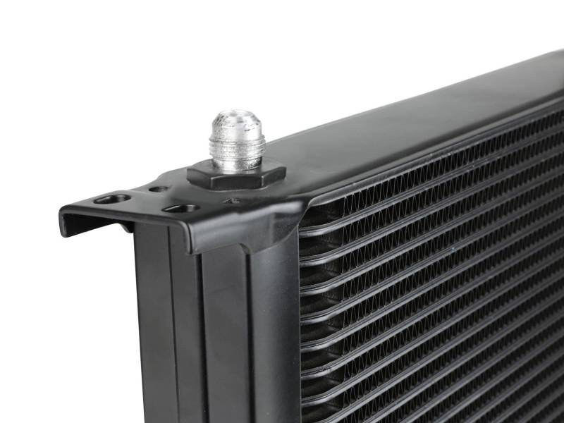 This BladeRunner Oil Cooler uses a durable brazed 25-row all-aluminum stacked plate construction that allows for greater efficiency and lower pressure drop than a standard tube-fin design. Designed to work in series with your vehicle’s original transmission oil cooler that is mounted down below. Provides lower transmission oil temperatures to reduce transmission wear and extend life of oil viscosity. The BladeRunner Oil Cooler kit makes installation simple with direct-fit mounting brackets, stainless steel hardware, and leak-proof AN connections. No cutting or alteration of factory hardware is required. Features a durable black finish with a laser-etched aFe POWER logo on the front and includes black-anodized billet aluminum AN fittings for a sleek appearance.