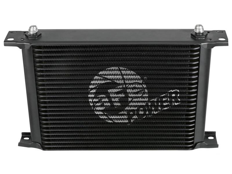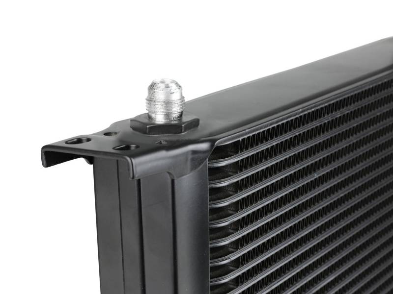 This BladeRunner Oil Cooler uses a durable brazed 25-row all-aluminum stacked plate construction that allows for greater efficiency and lower pressure drop than a standard tube-fin design. Designed to work in-line with your vehicle’s original equipment. Provides lower transmission oil temperatures to reduce transmission wear and extend life of oil viscosity. The BladeRunner Oil Cooler kit makes installation simple with direct-fit mounting brackets, stainless steel hardware, and leak-proof AN connections. No cutting or alteration of factory hardware is required. Features a durable black finish with a laser-etched aFe POWER logo on the front and includes black-anodized billet aluminum AN fittings for a sleek appearance.