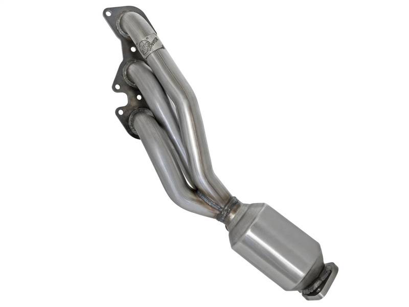 Replace the faulty or old stock catalytic converter with the all new aFe power direct-fit cat replacement. This cat replacement is constructed of mandrel-bent, 100% MIG welded stainless steel for strength and durability. This unit comes with a 49-State federal approved cat and 3/8" thick flanges for a secure hassle-free installation. This cat replacement is designed as a one piece system that retains the factory O2 sensor and hanger locations for a direct bolt-on and go solution. Stainless Steel Construction: This system is constructed of durable mandrel bent stainless steel tubing for maximum performance, corrosion resistance and strength, eliminating cracking. Factory Mounting Locations: Utilizes factory mounting locations and factory style flanges making it a true bolt-on system. Catalytic Converter: This kit comes with a 49-State federal approved catalytic converter for a bolt-on and go installation.
