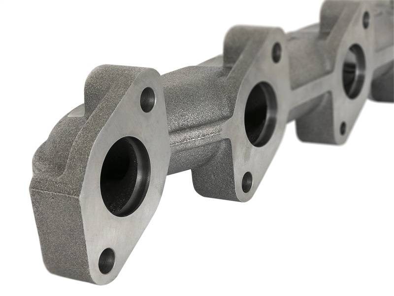 Bolt on diesel power with aFe's BladeRunner exhaust manifolds and up-pipe package for your 08-10 6.4L Powerstroke. This combo package reduces pressure loss to your turbocharger for increased performance and improve throttle response and is compatible with all factory equipment including AC lines, heat shields, sensors and EGR cooler. It includes up-pipes constructed out of heavy .120 wall 304 Stainless Steel tubing for maximum flow and excellent corrosion resistance. Heavy-duty 3/8" laser-cut flanges provide constant sealing to maximize turbocharger performance. CNC Machined Ports: These manifolds have both the inlet and the outlet ports CNC machined to match the factory ports. This allows for maximum flow, without compromising the integrity of gasket sealing for a leak-free seal. Auxiliary Ports: An Exhaust Gas Temperature (EGT) port is incorporated into each manifold for easy installation of gauges or testing equipment. The 304 stainless steel up-pipes utilize heavy duty 2" flex tubes with internal inner liner that protects the flex pipes from distortion during high-boost, high EGT situations.