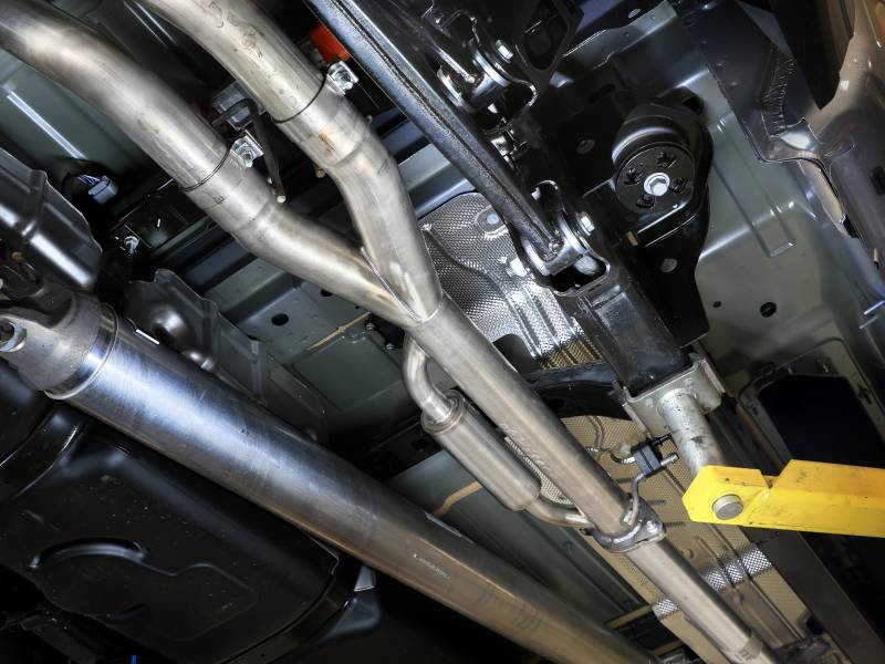 This cat-back exhaust system is constructed of 3 IN mandrel-bent 304 stainless steel tubing for maximum strength and durability. Finishing off this exhaust system are dual 5 IN diameter 304 stainless steel clamp-on exhaust tips. The tips features an aFe POWER logo plate riveted on for a unique style. This system produces a throaty sound unleashing all available horsepower and torque. Utilizing a factory style flange and hanger this system is a direct bolt-on system, which requires no cutting or modifications for a hassle-free installation. State-of-the-art computer-aided design technology is utilized for precise vehicle fitment. 100% MIG-Welded for race-proven strength and durability