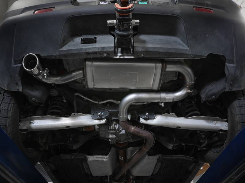 This axle-back exhaust system is constructed of 2-1/2 IN mandrel-bent 304 stainless steel tubing for maximum strength and durability. This system features a high-flow 304 stainless steel muffler, producing a deep sound. Finishing off this exhaust system is a 3-1/2 IN diameter polished 304 stainless steel clamp-on exhaust tip. The tip features a laser etched aFe POWER logo for a unique style. This system produces a deep sound unleashing all available horsepower and torque. Cutting is required, see instruction sheet for further information. Utilizing factory style hangers this system mounts directly to factory mounting locations for a hassle-free installation. State-of-the-art computer-aided design technology is utilized for precise vehicle fitment. 100% MIG-Welded for race-proven strength and durability.