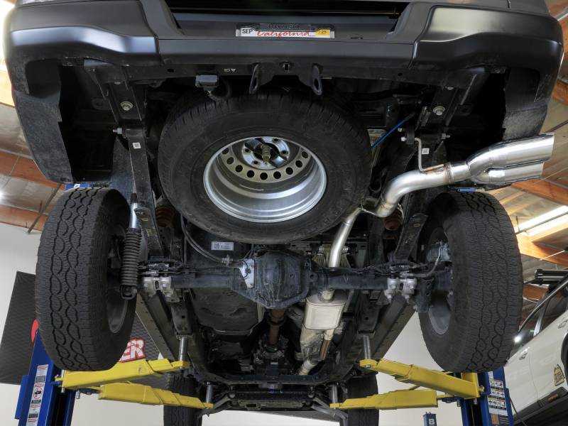 This cat-back exhaust system is constructed of 2-1/2 IN - 3 IN mandrel-bent 304 stainless steel tubing for maximum strength and durability. Finishing off this exhaust system are 304 stainless steel polished clamp-on exhaust tips. The tips feature a laser etched aFe POWER logo. This system produces a throaty sound unleashing all available horsepower and torque. 100% MIG-Welded for race-proven strength and durability.