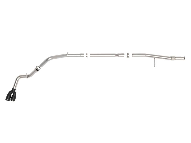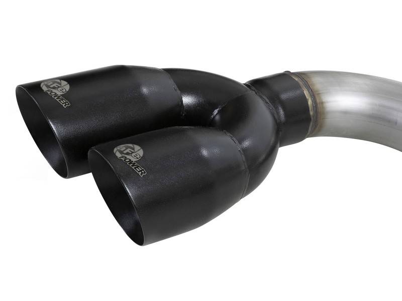 This DPF-back exhaust system is constructed of 3" mandrel-bent 304 stainless steel tubing for maximum strength and durability. Finishing off this exhaust system are dual 3-1/2" diameter black 304 stainless steel middle-side exit exhaust tips. The tips features a laser etched aFe POWER logo for a unique style.Utilizing factory style hangers this system is a direct bolt-on system, which requires no cutting or modifications for a hassle-free installation. This DPF-back exhaust system uses a heavy duty flex pipe with an internal interlock liner for added strength and durability. Utilizing state-of-the-art computer-aided design technology, this exhaust system is designed for custom, high tolerance factory fitment. 100% MIG-Welded for race-proven strength and durability. Intercooled tubing provides reduction in exhaust gas temperatures.