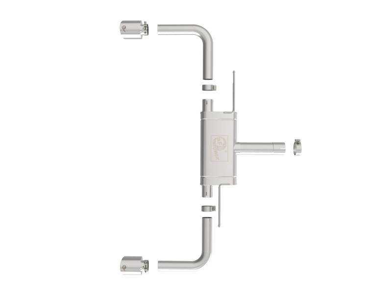 This axle-back exhaust system is constructed of 3 IN - 2-1/2 IN mandrel-bent brushed finished 304 stainless steel tubing for maximum strength and durability. This system features a high-flow 304 stainless steel polished muffler, producing a powerful sound. The muffler has a polished finish for ultimate corrosion resistance. Finishing off this exhaust system are dual 4-1/2 IN diameter polished 304 stainless steel clamp-on exhaust tips. The tips features a laser etched aFe POWER logo for a unique style. This system produces a powerful sound unleashing all available horsepower and torque. Some cutting may be required, see instruction sheet for further information. Utilizing factory style hangers this system mounts directly to factory mounting locations for a hassle-free installation. State-of-the-art computer-aided design technology is utilized for precise vehicle fitment. 100% TIG-Welded for race-proven strength and durability.