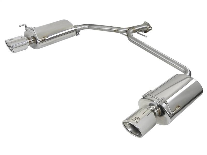 aFe is proud to introduce the new Takeda Axle Back Exhaust System for the 2013-2016 Honda Accord Sport Sedan L4-2.4L. In recent testing this system produced 7 horsepower and 7 lbs. x ft. of torque. This exhaust starts out with an OE style flange and uses 2.25in tubing that merges into dual 1.75in tubing which improves performance across the power band while maintaining a great tone. TIG-welded and brushed finish mandrel bent 304 stainless steel for maximum strength and durability, this system is equipped with dual high flow, polished mufflers for maximum flow and performance. To finish off this exhaust are dual laser etched, double wall, angle cut 304 stainless steel tips. This exhaust uses all factory hanger locations for a hassle free installation. No modifications necessary.