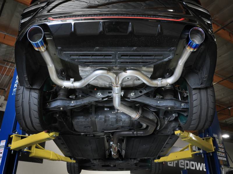 aFe Takeda 20-21 Kia Forte GT 1.6L (t) 3in to 2.5in SS Axle-Back Exhaust System w/ Blue Flame Tips 49-37037-L