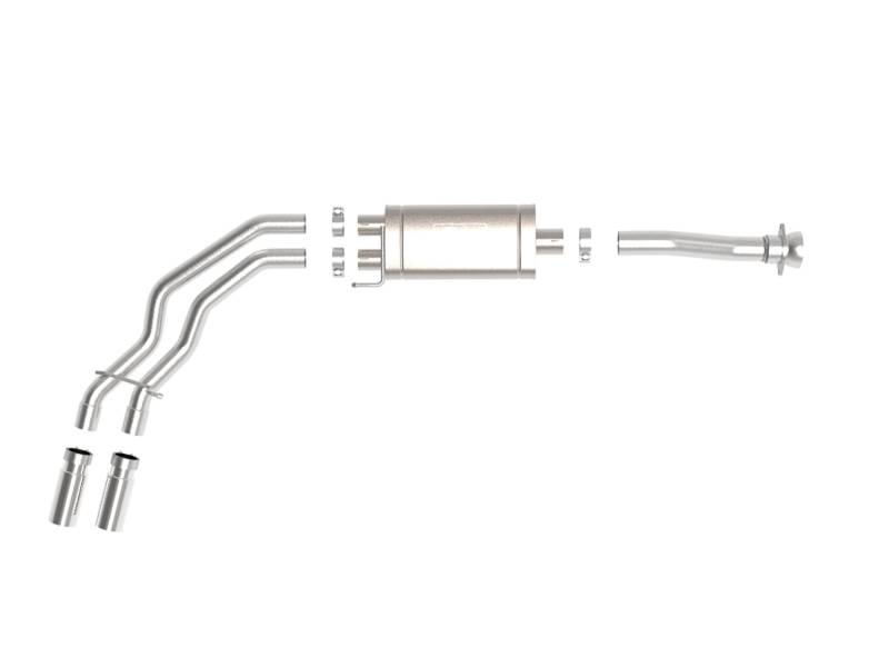 This system produced gains of up to +9 HP and +17 lbs. x Ft. TQ., as measured on our in-house dyno. This cat-back exhaust system is constructed of 3 IN - 2-1/2 IN mandrel-bent 409 stainless steel tubing for maximum strength and durability. This system features a high-flow 409 stainless steel muffler, producing a aggressive sound. Finishing off this exhaust system are dual 3-1/2 IN diameter polished 304 stainless steel clamp-on exhaust tips. The tips features a laser etched aFe POWER logo for a unique style. This system produces an aggressive sound unleashing all available horsepower and torque. Utilizing a factory style flange and hangers this system is a direct bolt-on system, which requires no cutting or modifications for a hassle-free installation. Utilizing state-of-the-art computer-aided design technology, this exhaust system is designed for custom, high tolerance factory fitment. 100% MIG-Welded for race-proven strength and durability.
