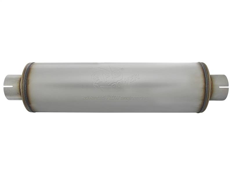 The aFe Universal fit 409 Stainless Steel Performance Muffler is designed to provide a deep, throaty, powerful sound on acceleration, but maintain a smooth sound at idle. This muffler is constructed of brushed finished 409 stainless steel and uses a straight through perforated core with heat resistant packing to reduce backpressure and maximize exhaust flow. You will see increased performance and improved throttle response over the factory exhaust. Also featuring a stamped aFe Power logo for an aggressive style. Muffler Specifications: 3-1/2" Center Inlet /Outlet, 24"L Body Diameter. All aFe exhaust systems are engineered and manufactured i n our Corona, California manufacturing facility.