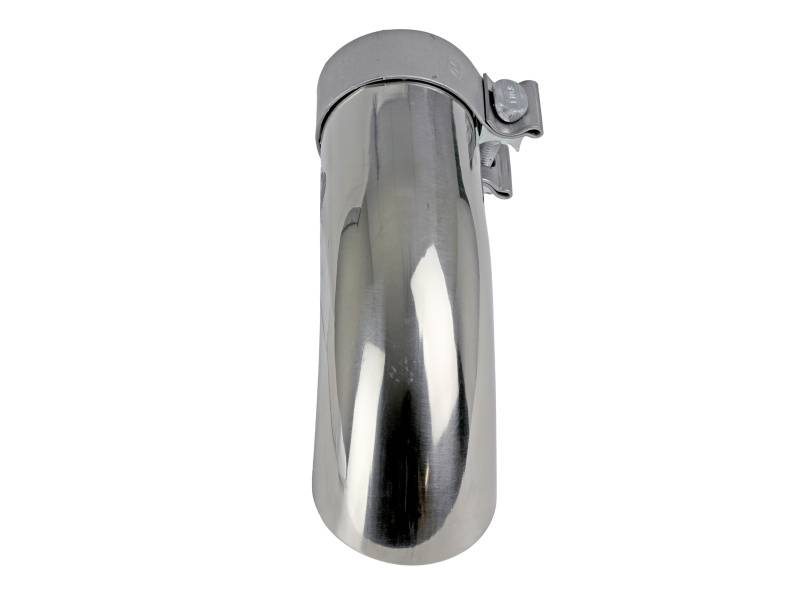 Upgrade your exhaust tip with this Mach Force-Xp 304 stainless steel, universal tip designed to fit most 2 1/2 IN exhaust systems. This tip is double-walled, slash cut, & polished tip with a laser-etched aFe Power logo for a custom look. Completely adjustable, the tip includes a quality stainless steel barrel band clamp for a secure fit and there is no modification or welding required. This tip is constructed using 304 stainless steel for maximum strength and durability. Branded with a laser etched aFe Power logo for quality authenticity.