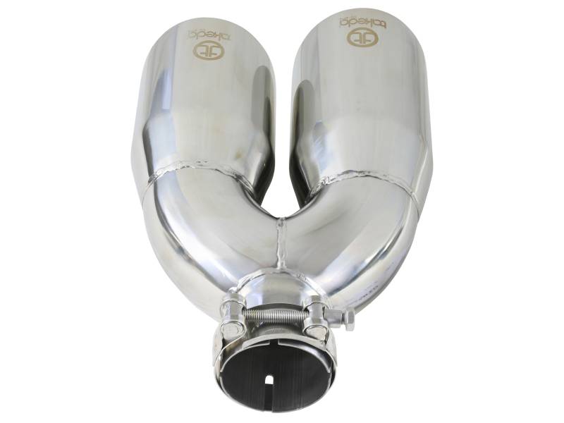 aFe Takeda 2.5in 304 Stainless Steel Clamp-on Tip Passenger Side 2.5in Inlet 4inDual - Polished 49T25484-P121