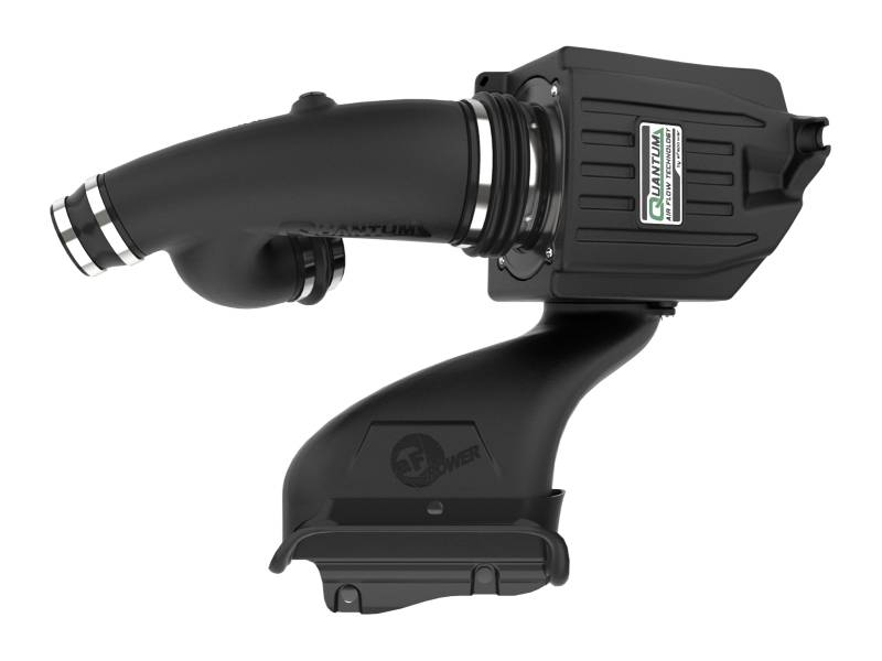 Quantum uses an integrated filter-to-housing design that attaches both components with four captive screws for a positive surface area seal and quick and easy install. Quantum's roto-molded housing features a five-rib industrial grade look for long lasting durability and aFe quality recognition. This system is equipped with our oil-free, 360-degree radial flow air filter with three layers of progressive synthetic media, providing optimum flow, protection and cleaning convenience. Specifically designed for the Quantum Series intake systems, the air filter features an injection molded base and top for lighter weight and rigidity. Captive screws are used to eliminate lost hardware and to securely fasten to the housing. The base includes a built-in, 3-angle velocity stack for smooth, even airflow. Quantum uses a dyno tuned, computer-designed intake tube to achieve optimum air flow. It's made from high impact, XLPE material for heat soak resistance and durability while maintaining a perfect fit. The included air scoop is designed to capture the coolest, freshest air from the top of the front grille to ensure increased air velocity into your Quantum air intake system for maximum performance and quicker throttle response. The Quantum Intake System includes silicone bellows couplings to absorb excessive engine movement and provide flexibility for a secure and easy install. Quantum intakes are designed with fewer parts for a quick and simple installation. This is a direct fit intake system that utilizes factory mounting points and requires no cutting or modifications. All clamps, couplings and hardware are included for a hassle-free installation.